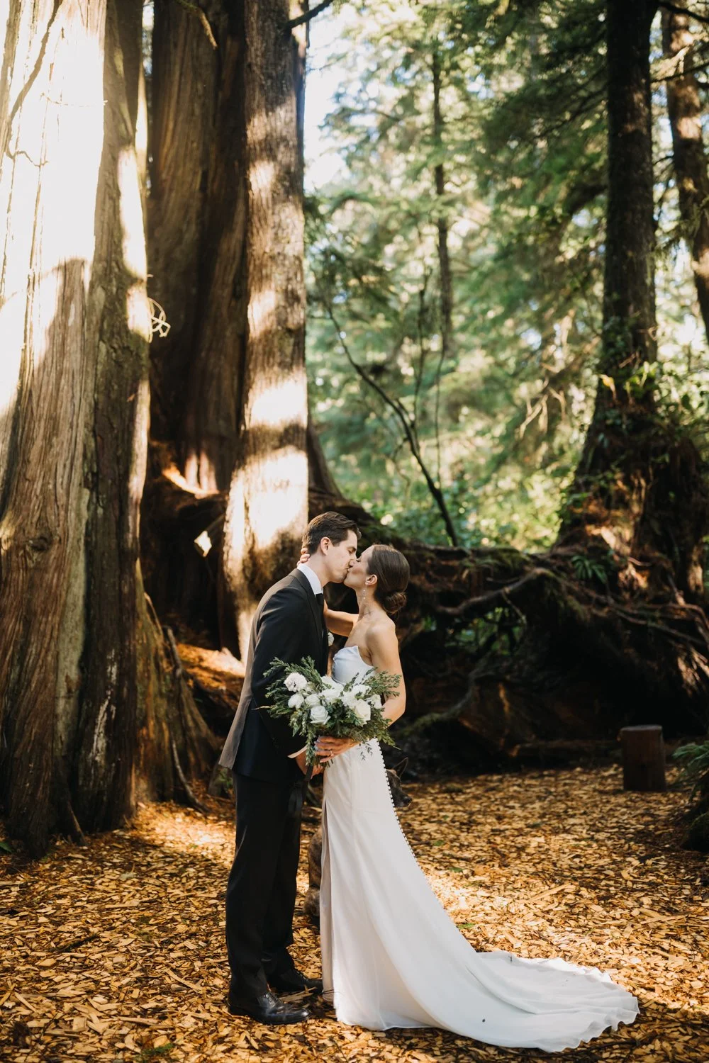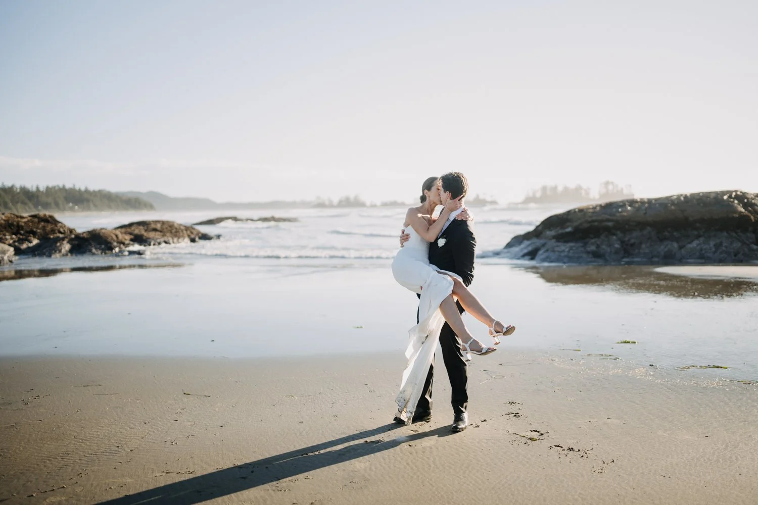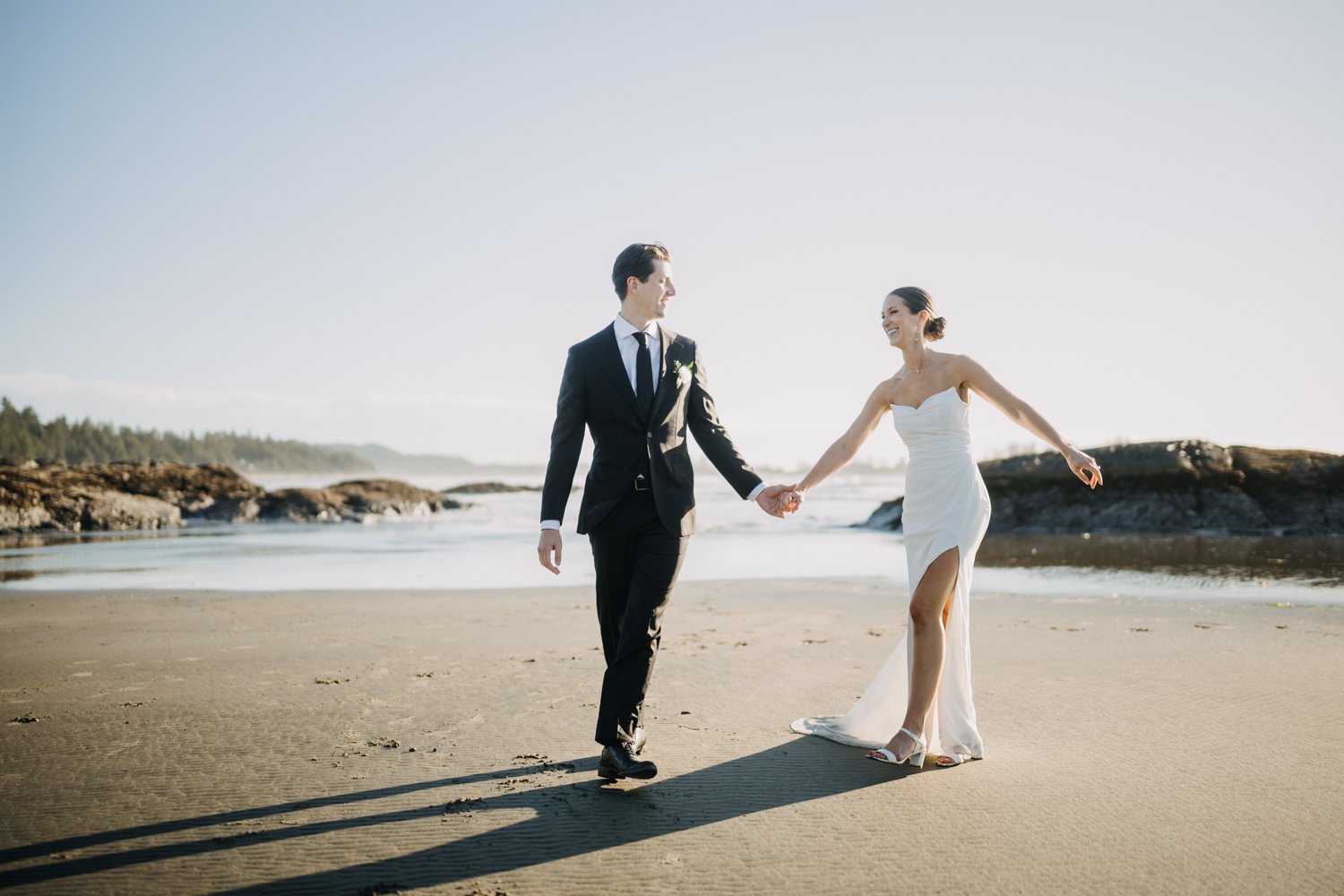 Getting married in November is definealty a gamble as far as weather is concerned. Somedays it’s raining sideways and blowing a gale other days it’s calm, sunny and beautiful, both are beautiful in their own way. For Andrea and Brendan’s intimate elopement at the Wickaninnish Inn they got the latter of the two. Not a breath of wind and the nicest low winter light. These two were so effortlessly glamorous and I had such a fun time frolicing on the beach with them and their adorable pup.