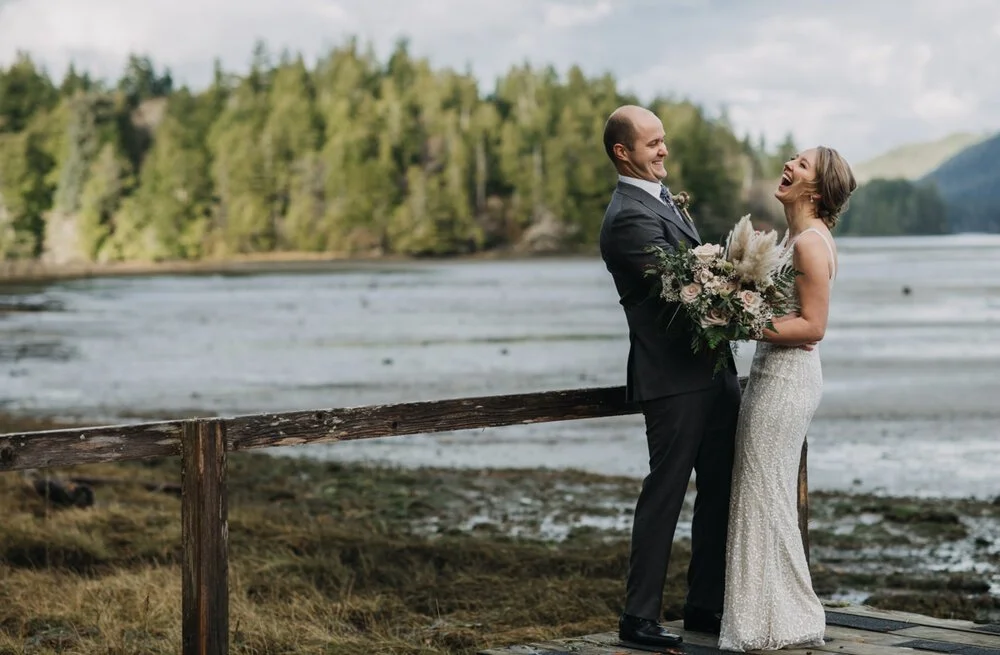 This tiny wedding might just take the cake for most beautiful of all time. It’s a total gamble getting married in Tofino at the end of November, possibly the rainiest month of the year. If it’s gonna be nasty it’s gonna be real nasty buuuuuuuuut if it’s not it can be so incredibly gorgeous such as on this particular day. Liz and Cam spent their wedding weekend at Cedarwood Cove, a little romantic retreat on the inlet side of Tofino. I met Cam there while we waited for Liz to get back from Salty Dolls Hair Salon, It didn’t take long to feel as though I had known Cam for years, he was so easy going and easy to talk to and was just beaming with excitement. Liz arrived looking drop dead gorgeous and like with Cam, we hit it off immediately. We did a first look overlooking the calm inlet of Tofino. After some bubbles we headed to North Chesterman Beach where we were greeted with the most amazing sky and light that makes these rare winter days so breath taking. Liz and Cam said their ‘I do’s” at Tonquin Beach where the light and clouds continued to do magical things for us. We shot till dark and I left the newly weds to go be wined and dined at the Wolf in the Fog.